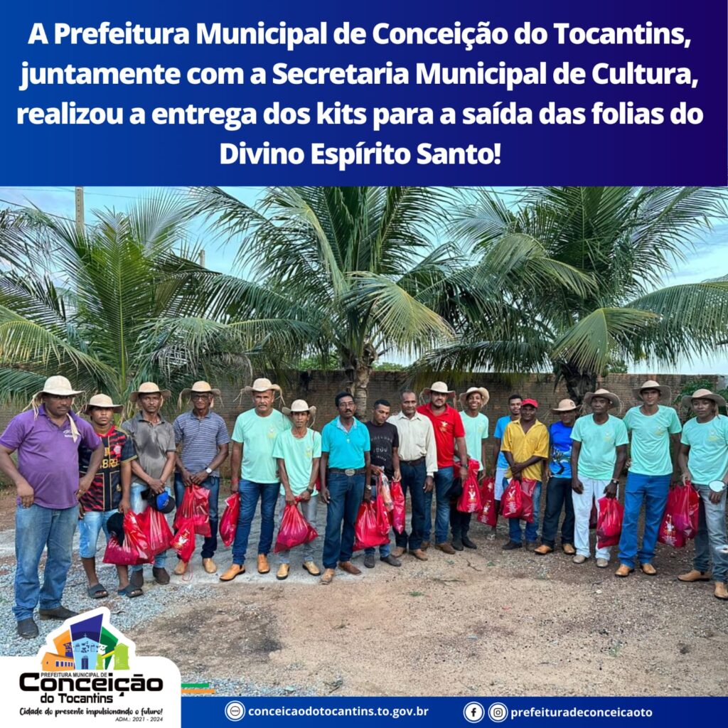 A Prefeitura Municipal de Conceição do Tocantins, juntamente com a Secretaria Municipal de Cultura, realizou a entrega dos kits para a saída das folias do Divino Espírito Santo!